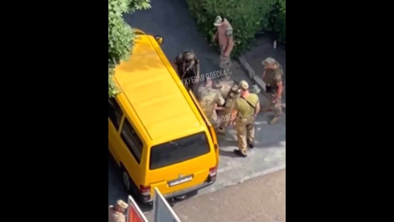 Video from Odessa, where men are forcibly loaded into cars and driven in an unknown direction, is published by local telegram channels.