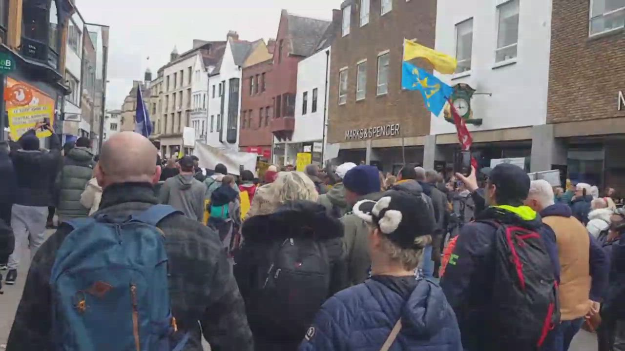 Thousands marched through Oxford City Centre on Saturday 18th February to protest against the Dystopian 15 minute smart city prisons.