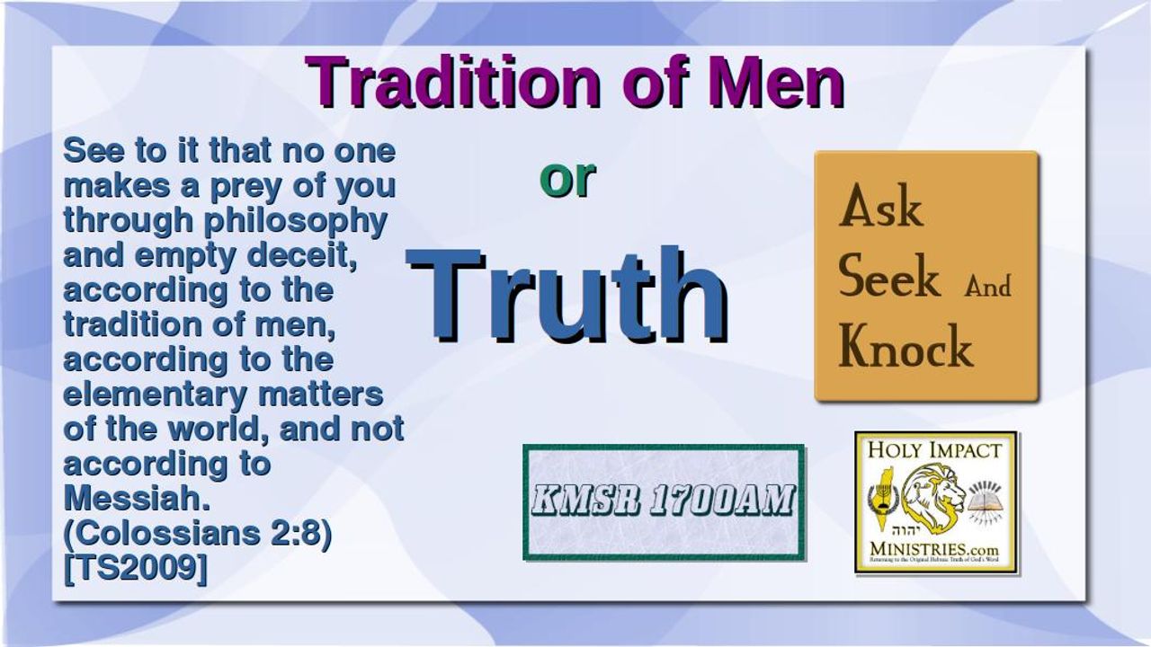 Should we follow the Traditions of Men? Or should we follow the Scriptures? Are they one and the same? What did Yashua say about traditions of men, and are there traditions of truth? Let’s find the truth together as we talk at the round table of Ask Seek and Knock!