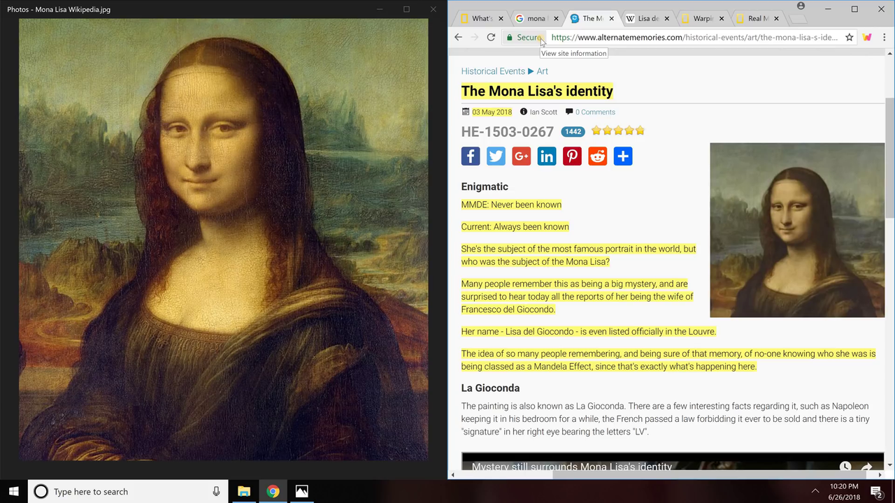 Mandela Effect - Mona Lisa's identity! and NEW Evidence of her NOT smiling!
