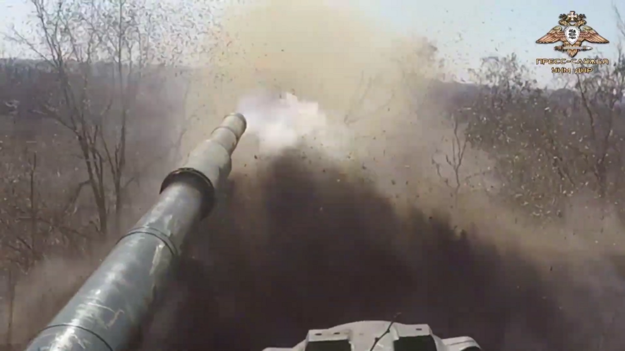 "DPR People's Militia tanks support the offensive on Mar'inka, leaving no chance for Ukrainian nazis"