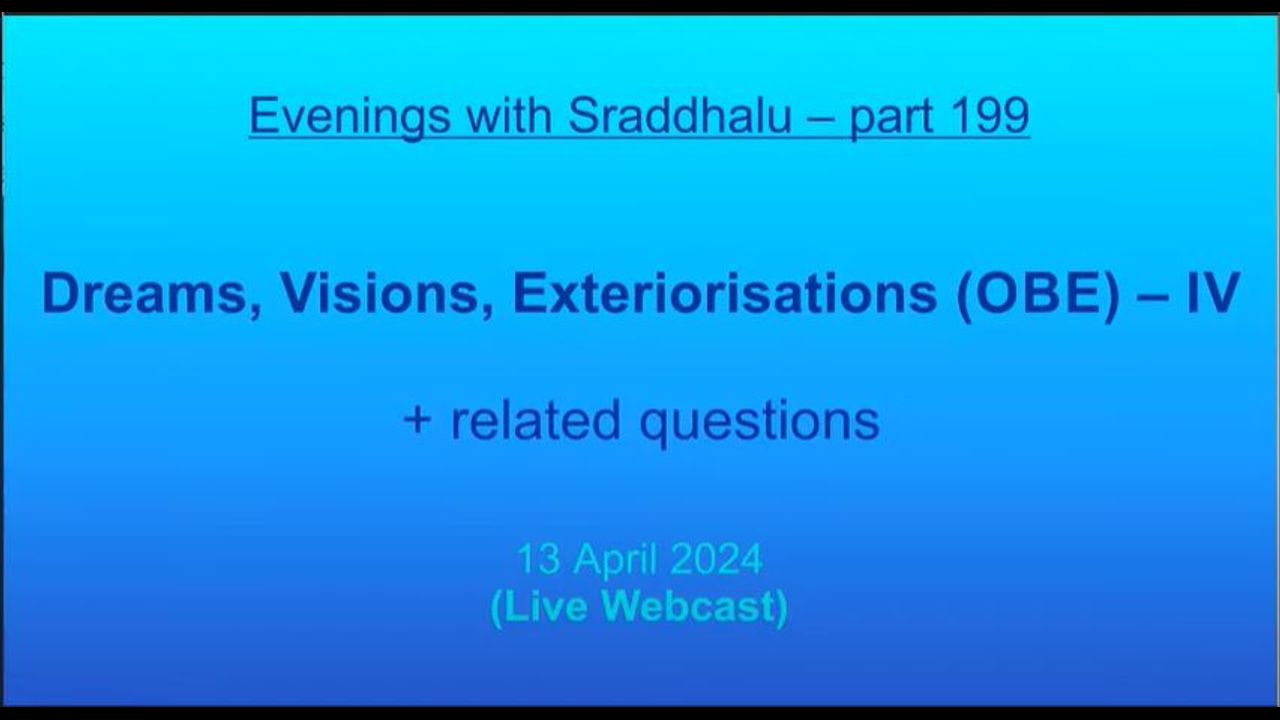 Integral Studies, 04.13.24, Saturday, EWS #199: Dreams, Visions, Exteriorisations (OBE) – IV (Evenings with Sraddhalu)