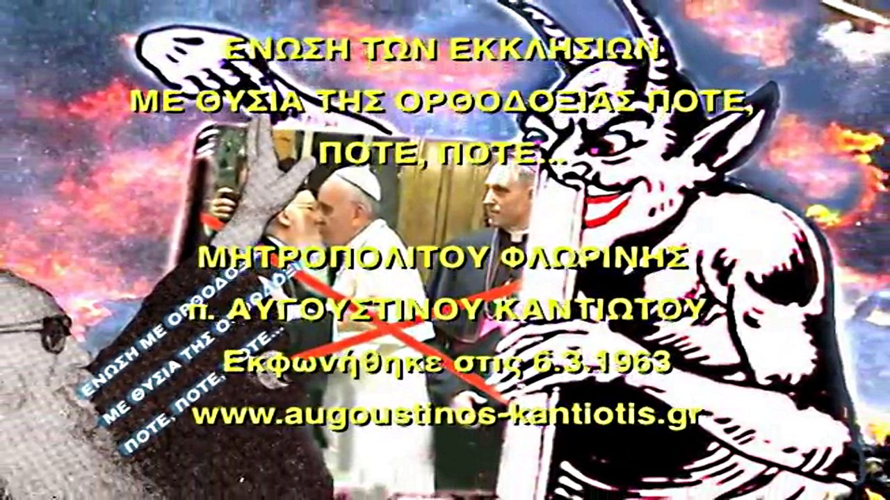 ΕΝΩΣΗ ΕΚΚΛΗΣΙΩΝ ΜΕ ΘΥΣΙΑ ΤΗΣ ΟΡΘΟΔΟΞΙΑΣ ΠOTE, Μητροπολίτη Φλωρίνης, Αυγουστίνου Καντιώτου https://ugetube.com/watch/CuBCiLTiD4thuKv , https://rumble.com/vvx3rr--ote-.html . ΠΗΓΕΣ: https://www.augoustinos-kantiotis.gr/?p=93714 , https://youtu.be/dm-ZExzwJO4 .