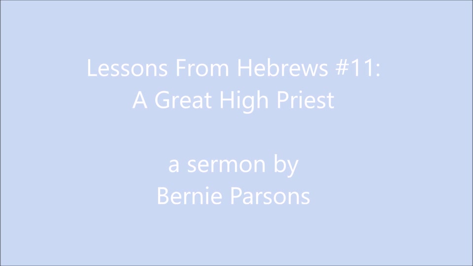 A Great high Priest, a short sermon by Bernie Parsons on 07/05/2020 discusses Jesus as the High Priest under the new spiritual kingdom of God.
