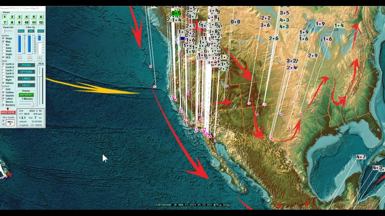 West Coast USA also due on land in California (northern california), as well as a more rare M4.0+ earthquake due on the New Madrid in Illinois down to Arkansas (across South Missouri).