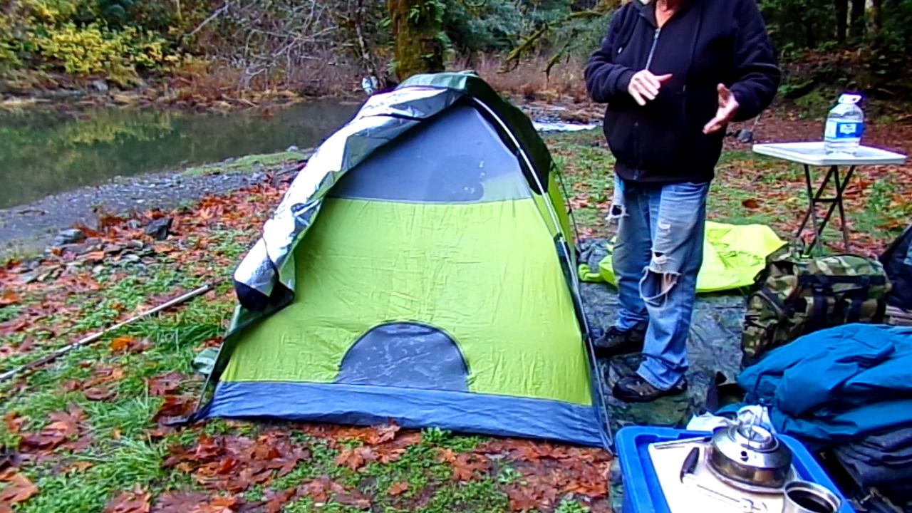 Showing how to help keep the tent warm just from body heat.......God Bless.