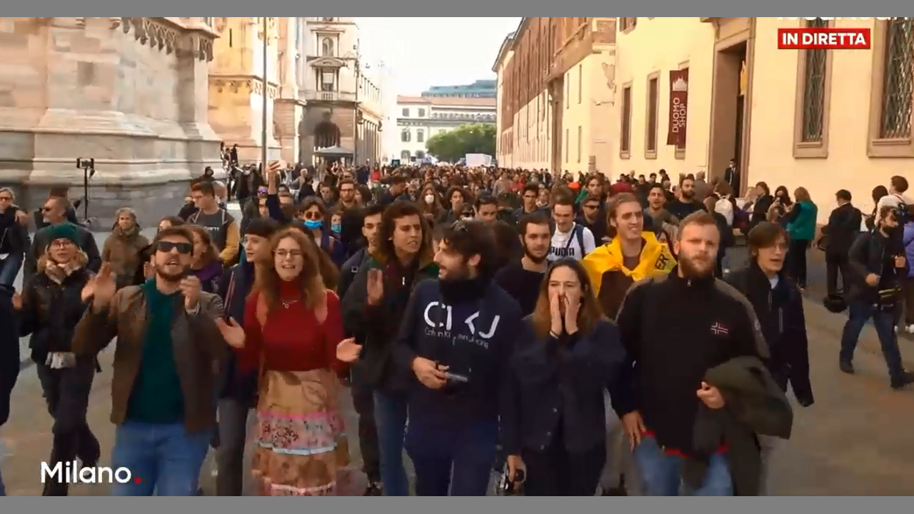 Italy Milano Oct15th No Green Pass Covid-19 Vaccine Passports Freedom Demonstration March Protest