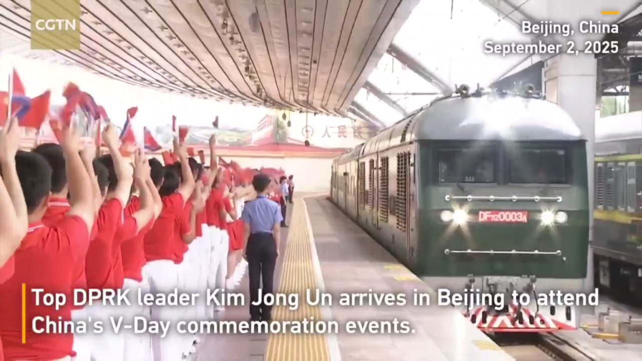 Kim Jong Un (Prez North Korea) arrives in Beijing for Victory Day celebrations.
