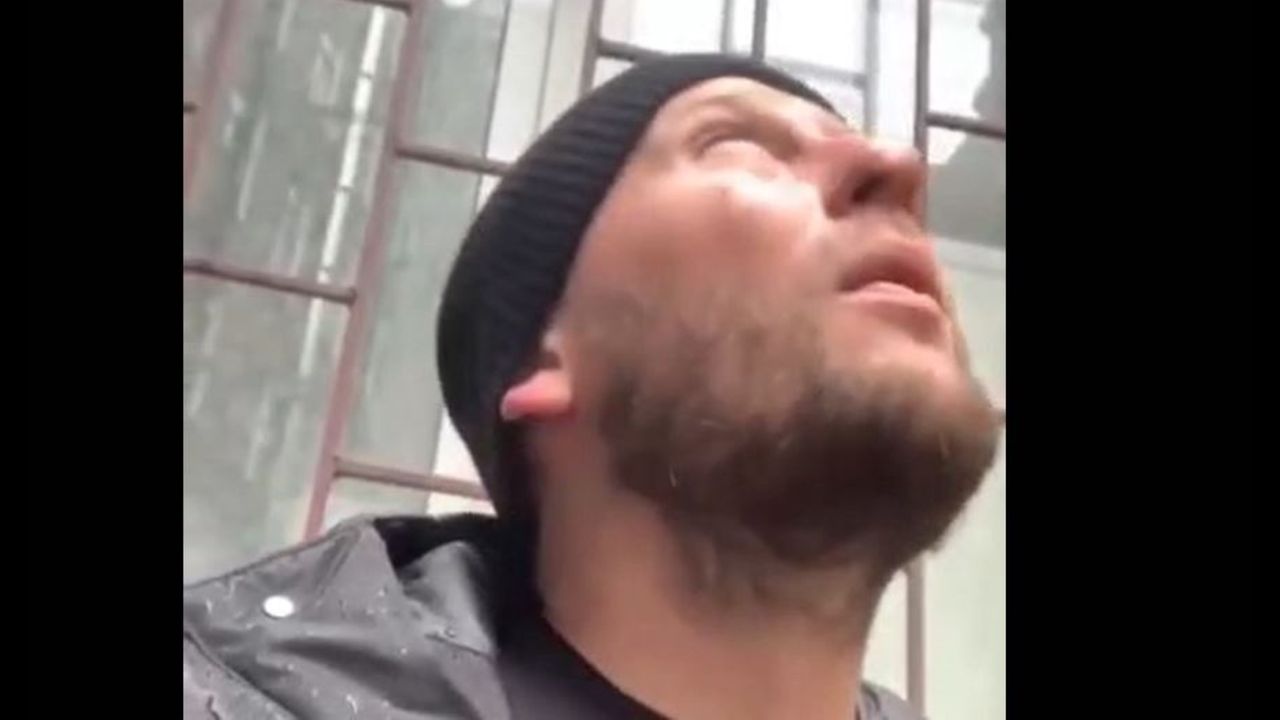 Ukraine - Missile Hits Structure Over Head of Film Maker - Structure Collapses On Him During Filming - 030322