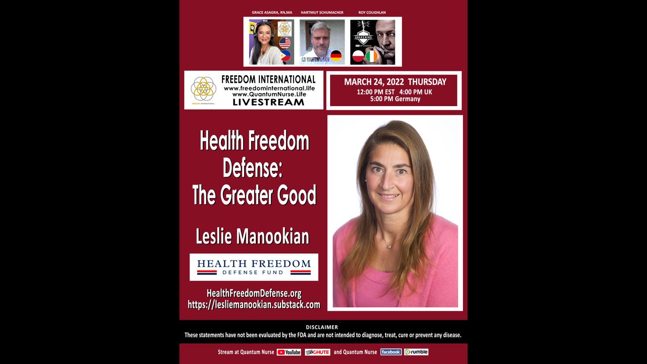 Leslie Manookian is president and founder of Health Freedom Defense Fund, a nonprofit which seeks to rectify health injustice through education, advocacy, and legal challenges to unjust mandates, laws, and policies that undermine our health freedoms and human rights. She speaks, writes, and advocates on topics of health, freedom, nutrition, personal development, politics and more. She is a former successful Wall Street business executive, an award-winning documentary filmmaker, and qualified homeopath. She conceived, wrote and produced The Greater Good, an award-winning documentary exploring vaccines. She serves on the boards of the Weston A. Price Foundation and Health Freedom Idaho. She has been featured in dozens of TV, radio, print, and Internet interviews as well as appearing at numerous conferences. She holds an MBA from the University of Chicago, a BA from Middlebury College, and M.L.C.Hom from Lakeland College of Homeopathy.