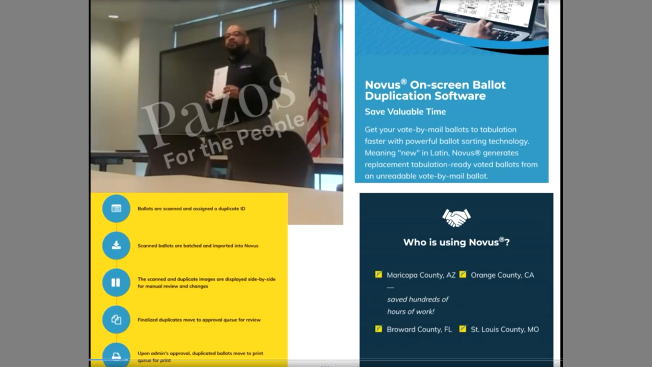 a few promo clips spliced together. the first is from a presentation in Florida but you can see on it that Maricopa uses Novus. Eballots stands for Emergency ballots/Emergency voting: after Early Voting on the last days before Election Day.