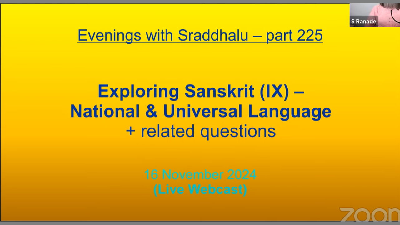 Integral Studies, 11.17.24, Sunday, EWS #225: Exploring Sanskrit (IX) – National & Universal Language (Evenings with Sraddhalu)