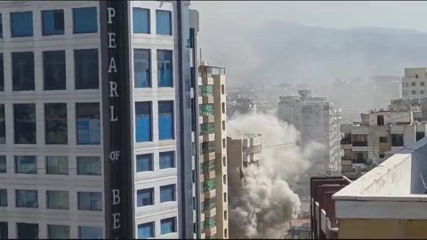 Israel targets Hezbollah's media relations building on Moawad Street in the southern suburb of Beirut.