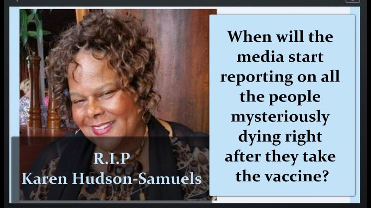 I have to give credit to the Detroit TV Station for announcing that she died just one day after taking the vaccine. This is something that the media can't keep quiet for much longer. The vaccines are harming more people at an alarming rate. They needed to perform longer trials on the drugs and they were never tested on animals. The media is just as guilty as those that are injecting the vaccines and Big Pharma. Karen Hudson-Samuels’ career in broadcast journalism spanned over four decades in Detroit. The Detroit media icon was found dead at her home by her husband last Tuesday, just one day after taking the COVID-19 vaccine but the official cause of her death is still unknown.