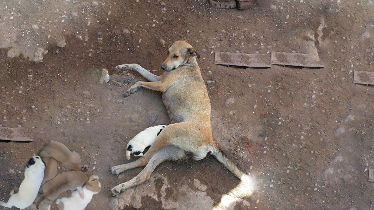 Regardless of whether it's hot or stormy. These 8 newborn puppies lie next to their mother.... Even in that terrible state, collapsed, unable to eat, Mindy still breastfed her baby. She never abandoned her children.