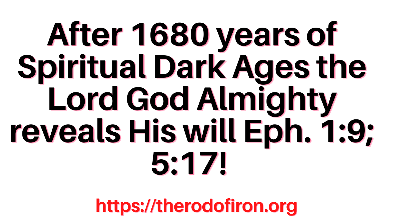 Eph. 5:17. The Lord's will after 1680 years of Spiritual Dark Ages where it was hidden Eph. 1:9