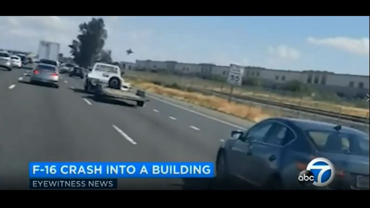 4yrs ago F-16 Fighter Jet Crash Riverside California Sprinkler System Miracle LIES
