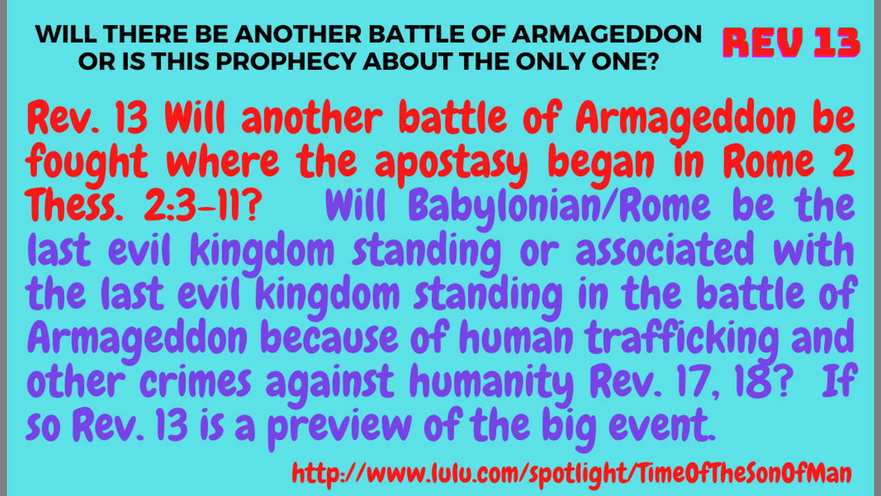 Rev. 13. WILL THERE BE A BATTLE OF ARMAGEDDON? WHY? WHEN? WHERE? AGAINST WHOM?