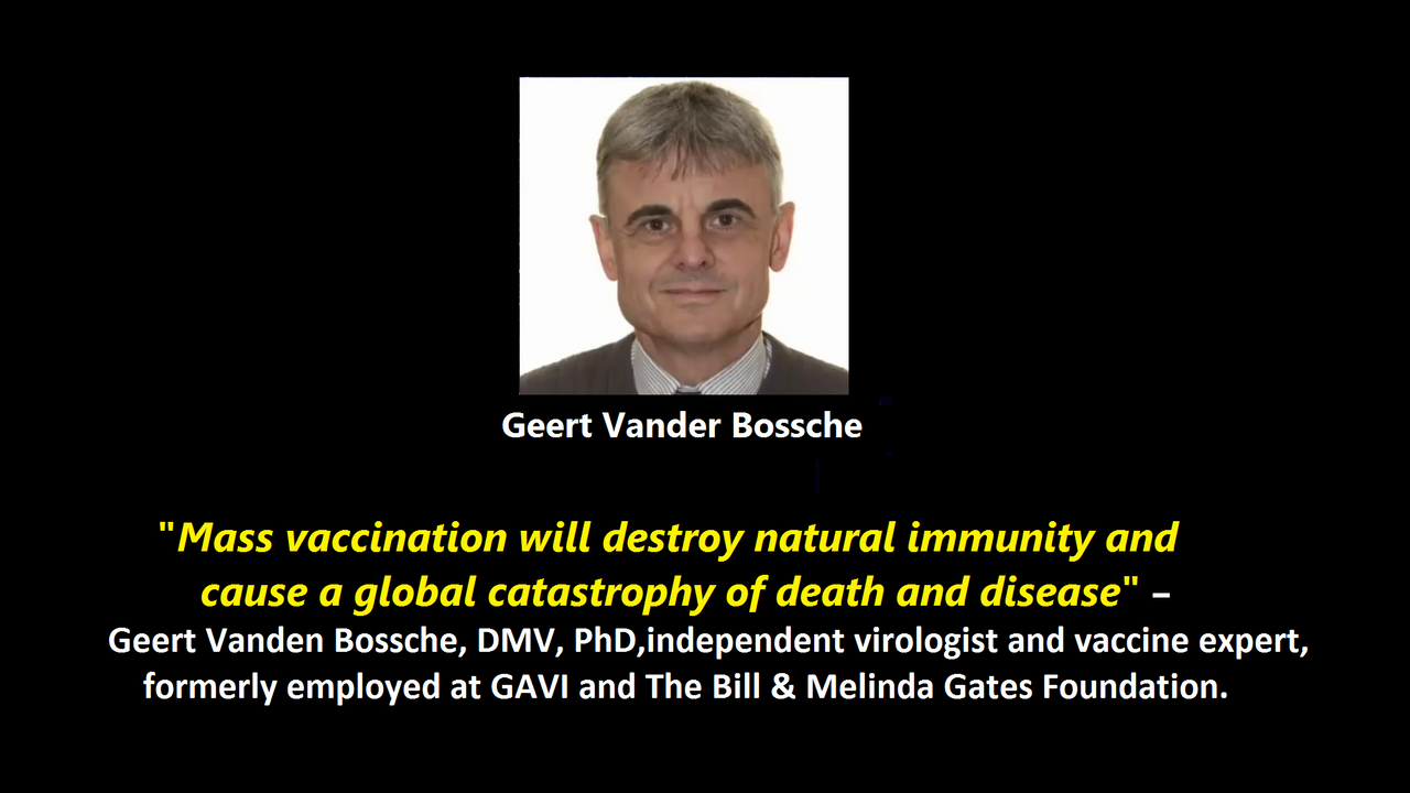 "Mass vaccination will destroy natural immunity and cause a global catastrophy of death and disease" - Geert Vanden Bossche, DMV, PhD, independent virologist and vaccine expert, formerly employed at GAVI and The Bill & Melinda Gates Foundation.