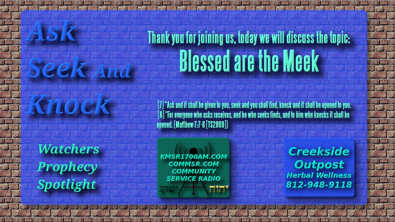 Thank you for joining us with kmsr1700am.com for another Ask Seek and Knock Teaching as we discuss the topic “Blessed Are The Meek”. What does the Scripture tell us about this topic? Grab your Scriptures and Highlighters, and Let’s Get Started. Please share it with your friends and if you liked it, give it a Like on whatever platform you are watching this on.