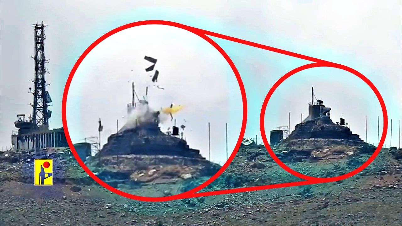 Scenes from the operation of the Islamic Resistance targeting spy devices at the radar site of the Israeli enemy army in the occupied Lebanese Shebaa Farms. 2024/04/15