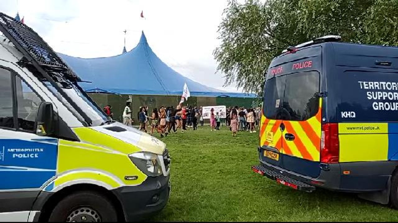 This upload shows how ridiculous the police are and can be! The TSG (riot squad) are there with tons of vans over nothing more then no more then 25 people with a few banners and a bit of music. There was a afro festival at Clapham for context