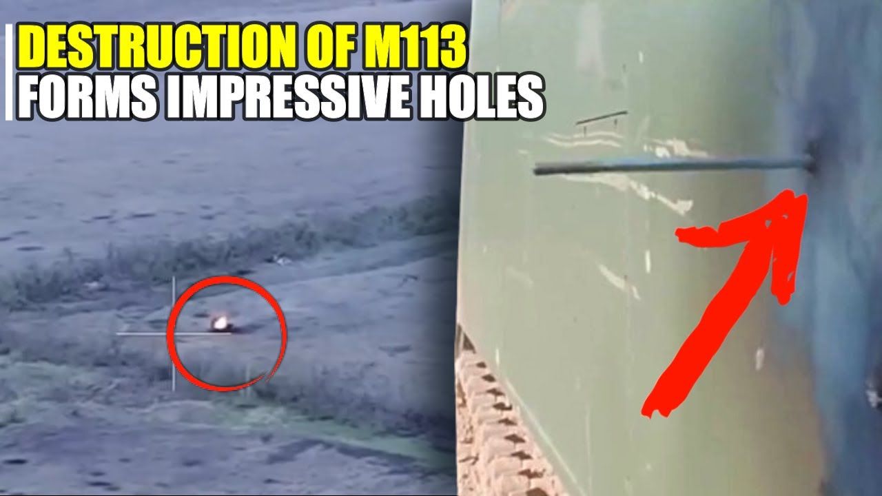 An American M113 armored personnel carrier operated by Ukraine was destroyed again near Svatovo with an anti-armor guided missile in the 1970s. Russia tested M113 by firing 12.7 mm and 30 mm caliber bullets. The armor was completely penetrated by ammunition forming an impressive dent.