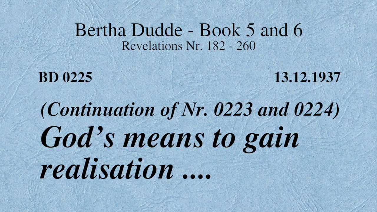 BD 0225 - GOD'S MEANS TO GAIN REALISATION .... (CONTINUATION OF NR. 0223 and 0224)