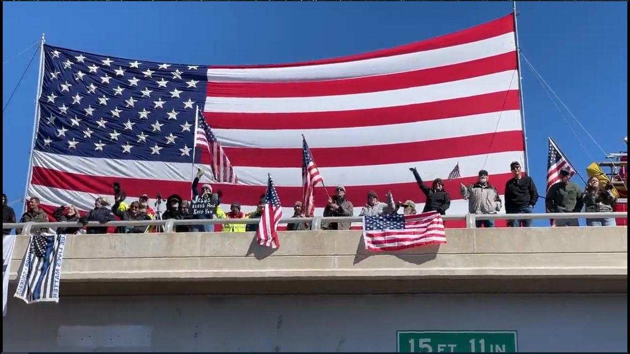 A group of Arizona firefighters even brought out their trucks and set up a massive American flag to show their support of the convoy.
