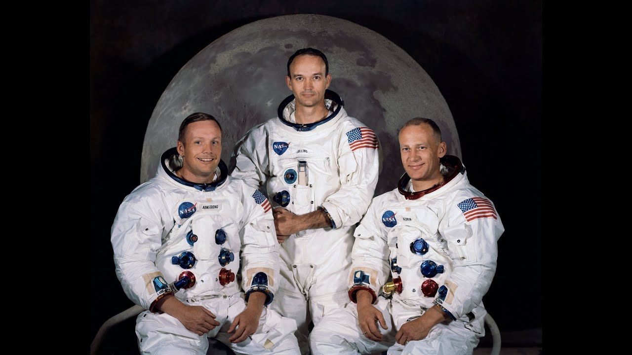 The crew of Apollo 11 nervously, reluctantly, and with the emotion of a eulogy, present their one and only full press conference . . . with the aid of teleprompters discretely hidden in the desk, in order to help them remember their one of kind experience, that the writers of their script should know nothing about.