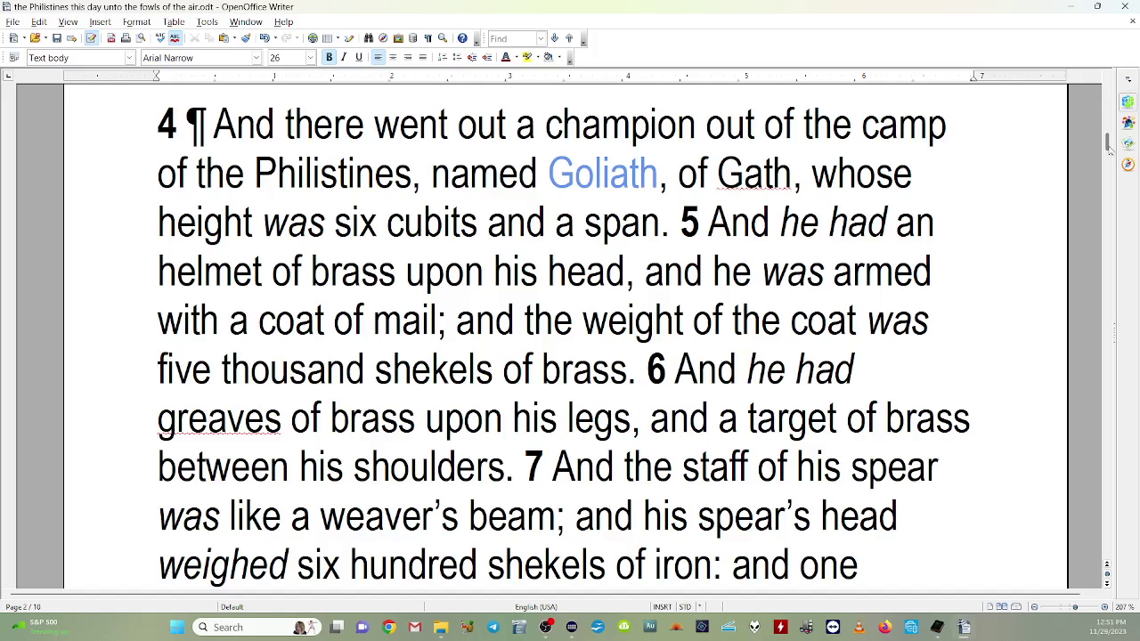 named Goliath, of Gath, whose height was six cubits and a span.