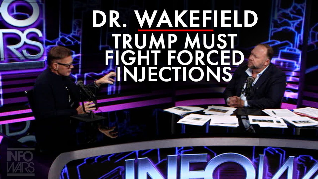 Dr. Andrew Wakefield joins Alex Jones in-studio to get the message to President Trump that he needs to fight against forced injections.