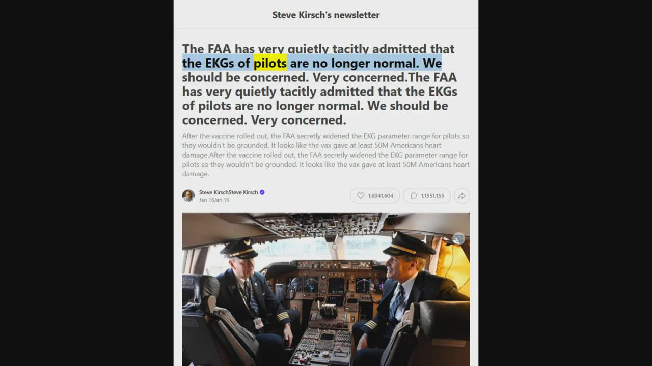 The FAA has very quietly tacitly admitted that the EKGs of pilots are no longer normal. We should be concerned. Very concerned.