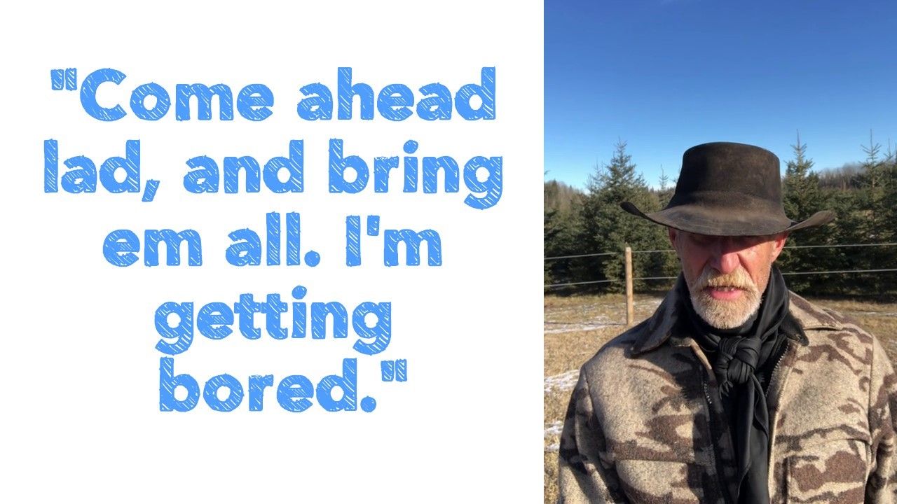 "Come ahead lad, and bring em all. I'm getting bored."