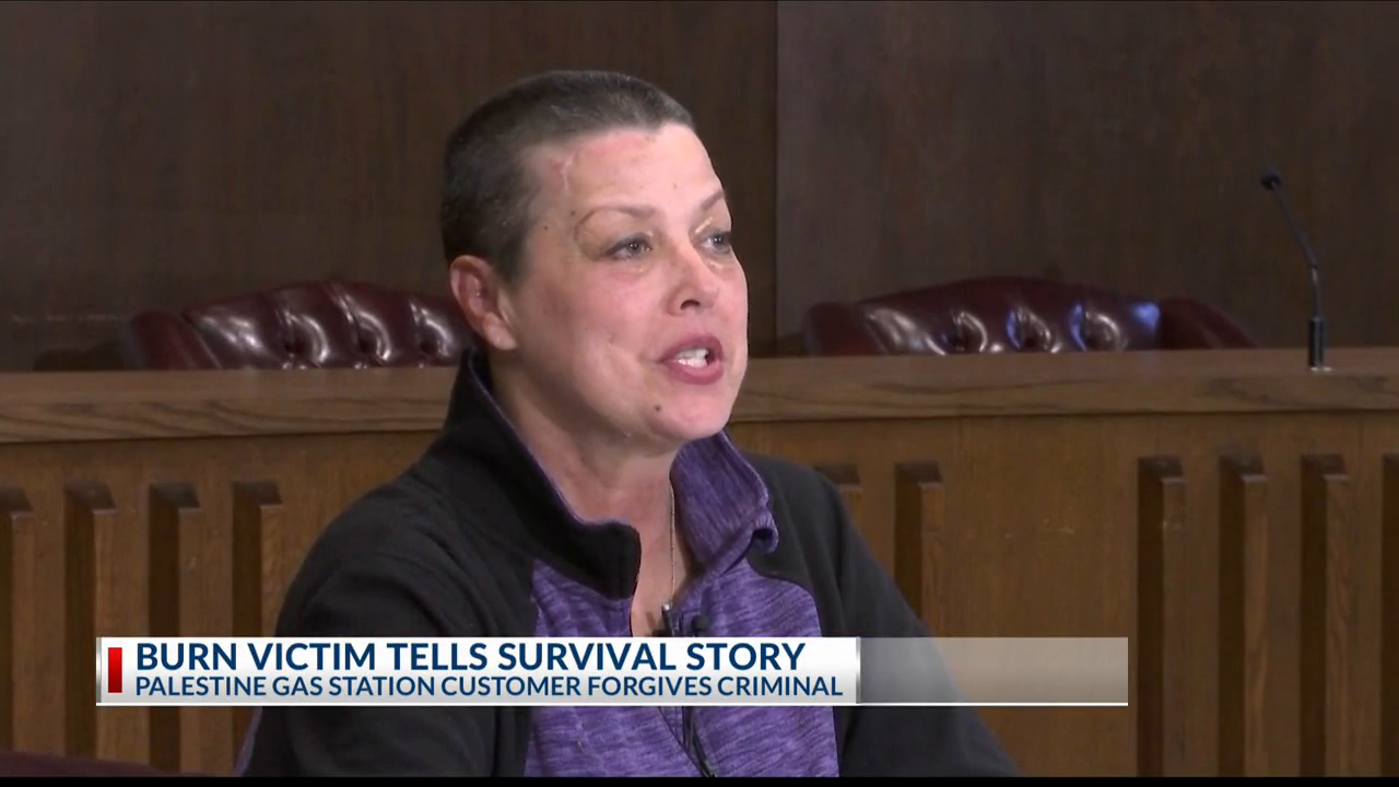 Thompson walked into the Pit Stop convenience store and, after asking Linda for something behind the counter, pulled out a handgun and forced Linda into a corner and tied her up. He then forced Della into the corner after she walked into the store, and tied her up, covering her eyes. He then poured lighter fluid on both women, before setting Della on fire, then fleeing with the money from the register. Linda freed herself and helped to put out the fire.