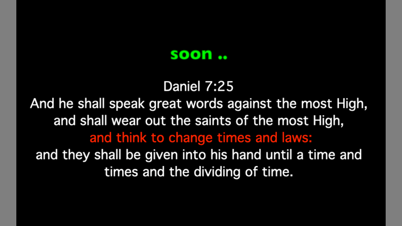 Daniel 7 : 25 And he shall speak great words against the most High, and shall wear out the saints of the most High, and think to change times and laws: and they shall be given into his hand until a time and times and the dividing of time.