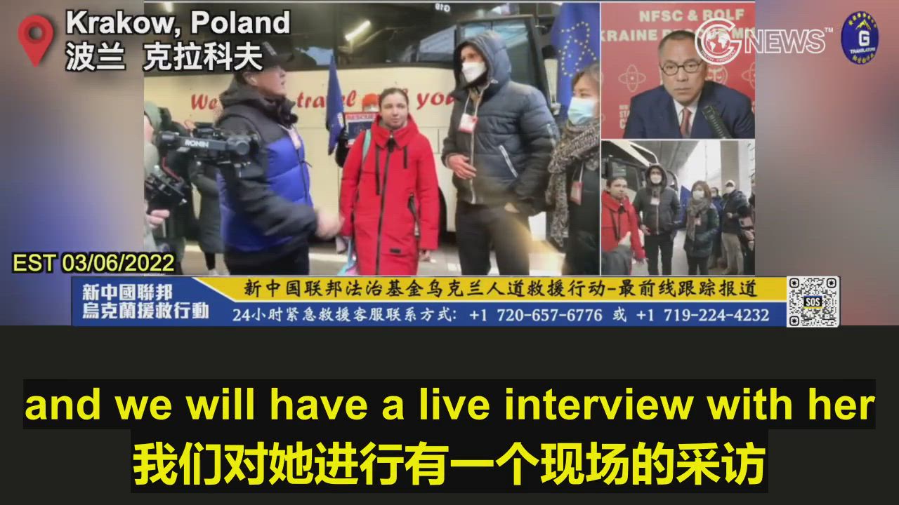 03/06/2022 NFSC & ROLF rescuers interviewed a Ukrainian woman who was just rescued by our bus in Krakow, Poland.