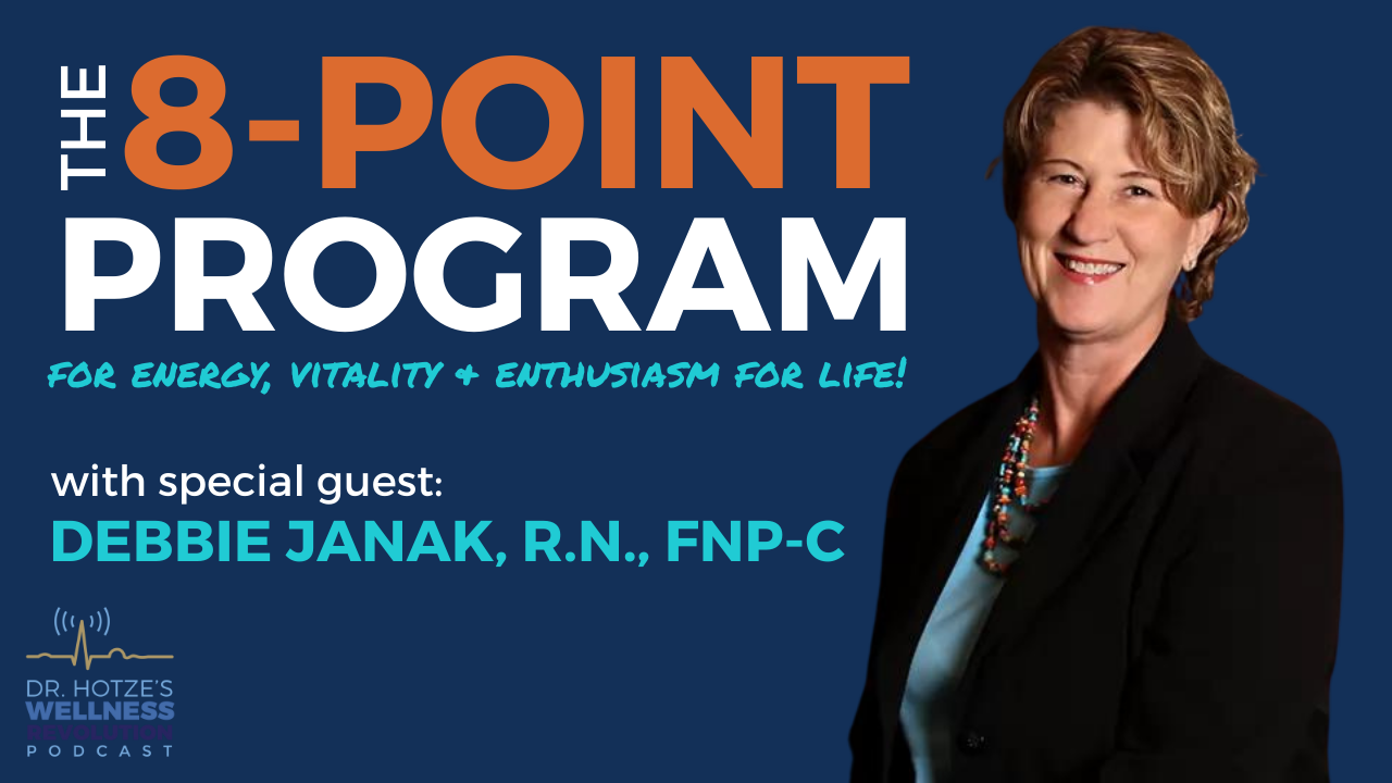 Join Dr. Hotze as he talks with Debbie Janak, R.N., FNP-C, who stumbled down the Western path of medicine until she started practicing natural approaches to health with the Hotze Health & Wellness Center in 2007. Debbie develops personalized treatment plans for her guests after spending time talking to them and learning about their symptoms. She believes when you talk to a guest and let them tell their story, they will tell you what the problem is. Toxins in our environment make us feel sicker quicker. Get your life back with the 8-Point program and feel like your old self again!