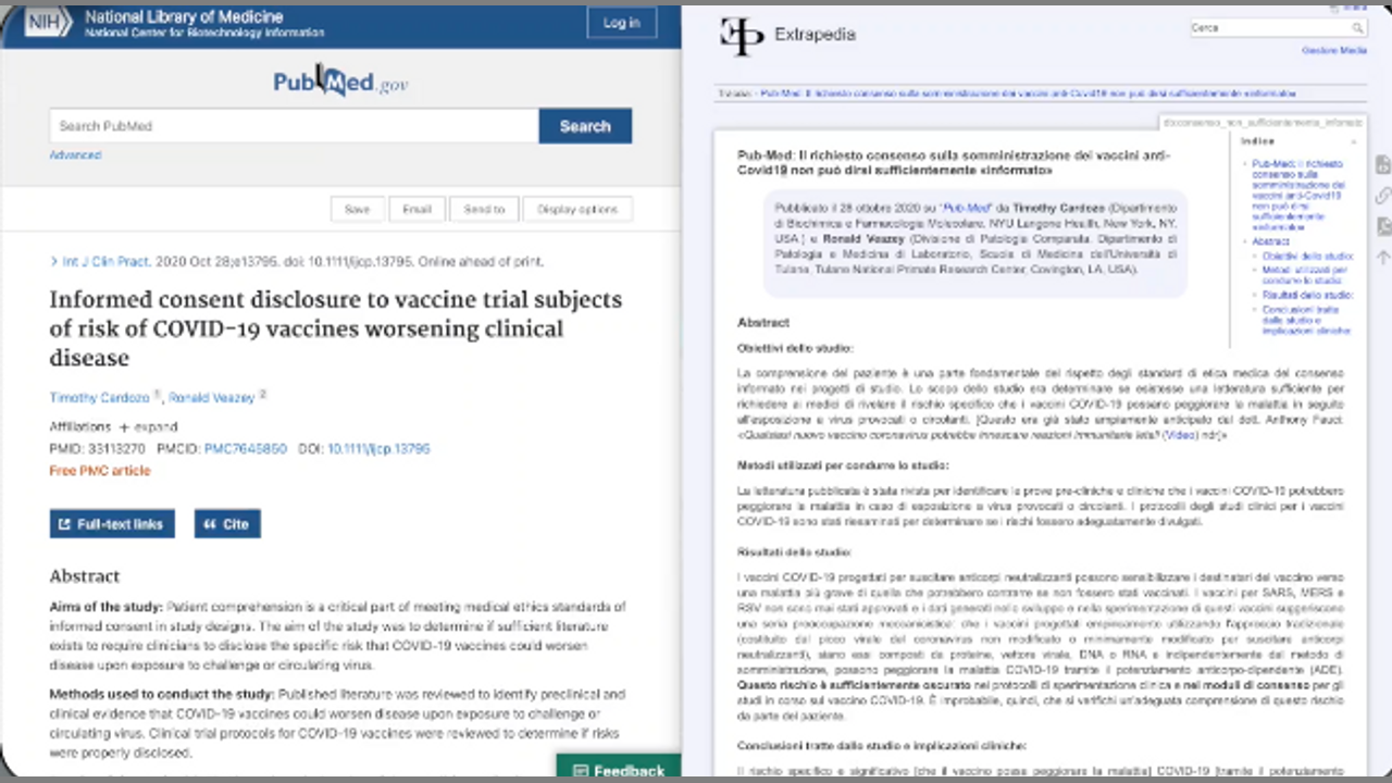 Da Extrapedia punto org. Pub-Med: Il richiesto consenso sulla somministrazione dei vaccini anti-Covid19 non può dirsi sufficientemente «informato»