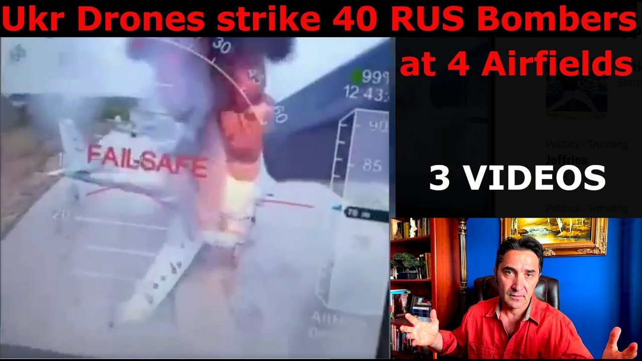 Ukraine launches large-scale drone attack on Russian airfields, 40 strategic bombers reportedly hit – videos. Huge war escalation. Record 479 RUS Missile+Drone attack. Ukr eliminates 40 RUS Bombers, 4 Airfields,