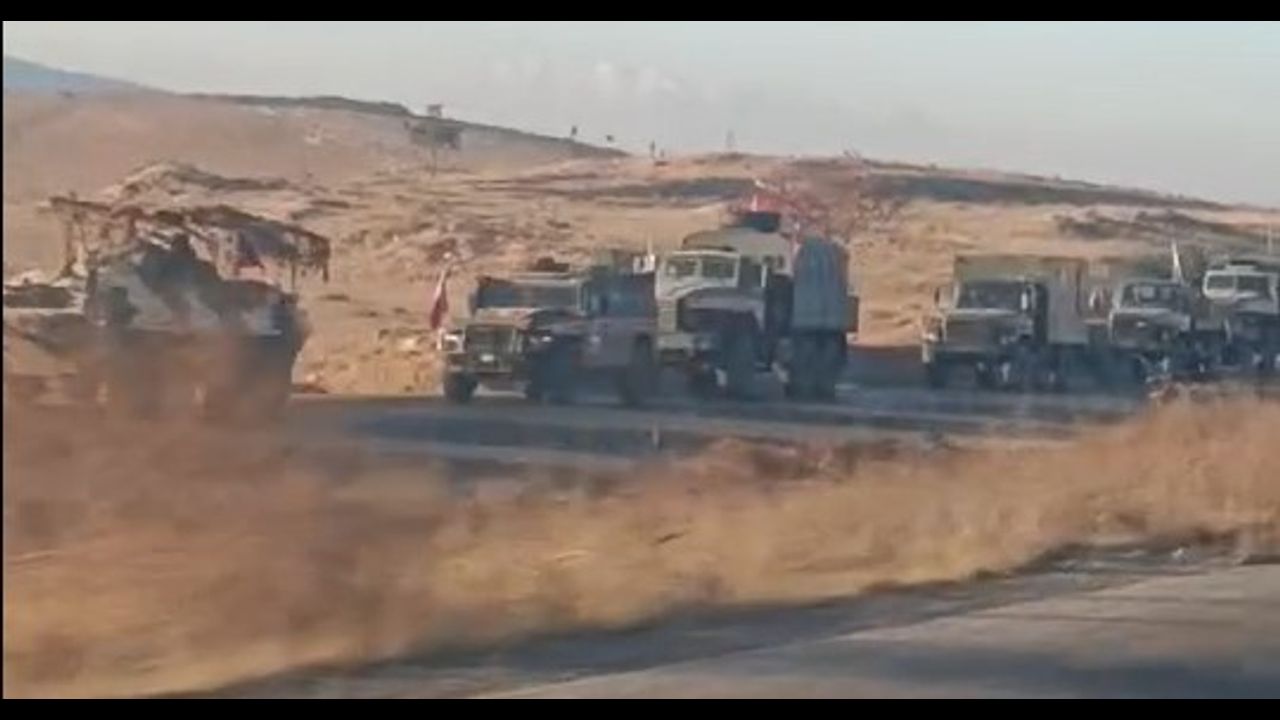 A huge column of Russian National Guard troops filmed by local residents on the coast of Latakia in Syria.