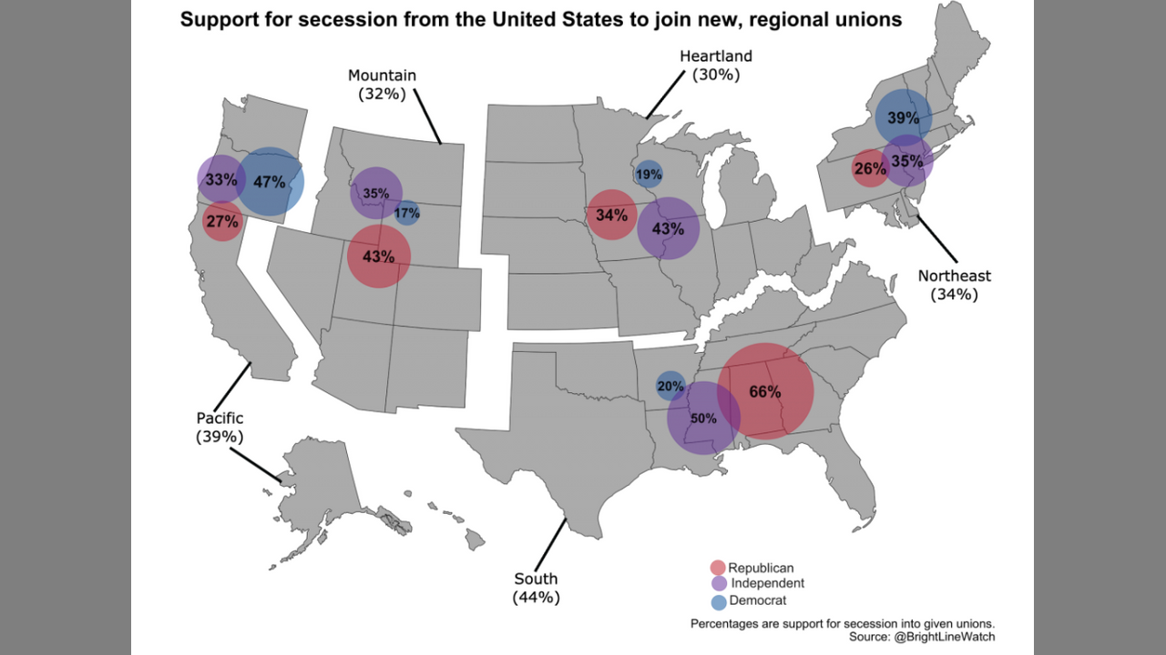 I also take a look at another poll which asked Americans from different regions if they would support new regional governments which replaced the United States.