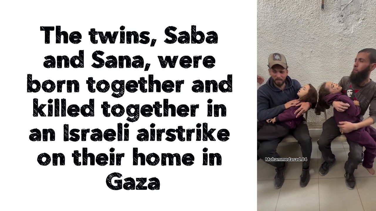 The twins, Saba and Sana, were born together and killed together in an Israeli airstrike on their home in Gaza.