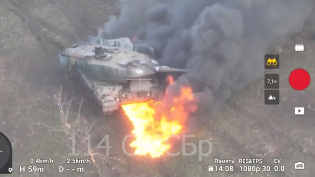 And here is a video of the defeat of a Leopard 2A6 from the 47th mechanized brigade of the Ukrainian Armed Forces by fire from the 114th motorized rifle brigade of the Russian Armed Forces.