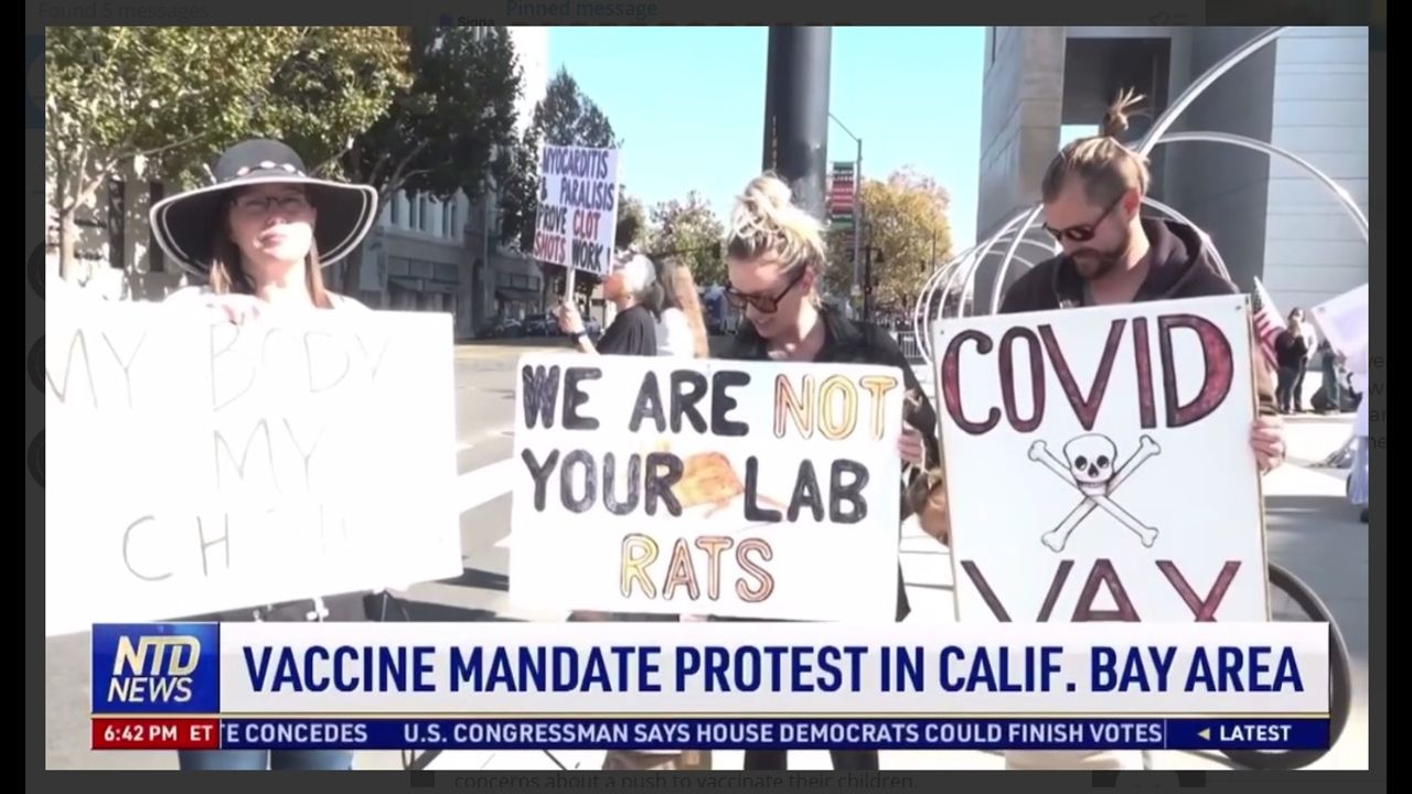 In the video aired by NTD news, protesters question the side-effects and argued for the freedom to choose. One protester interviewed referred to knowing two people who had died after taking the jab.