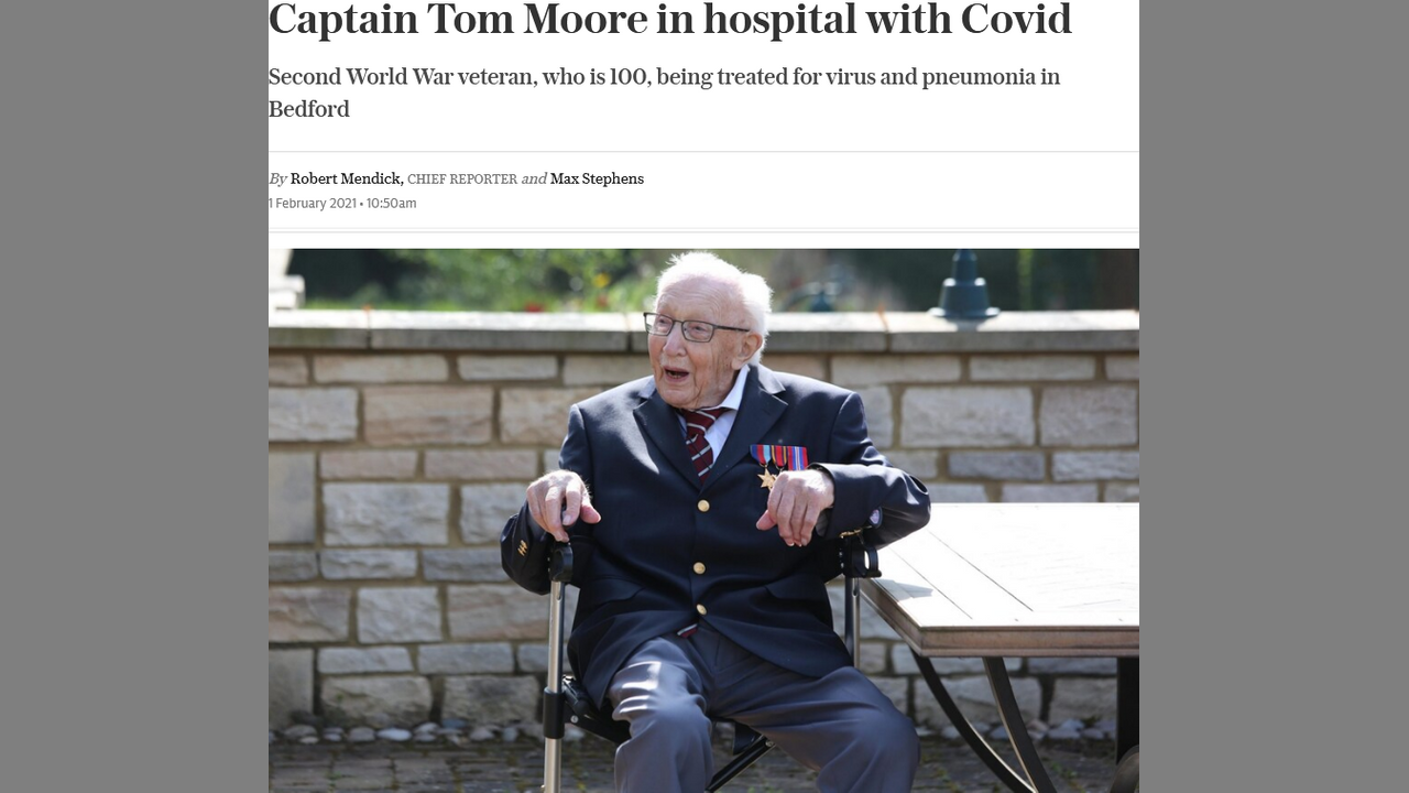 Uk's Captain Tom Moore, (using 100yr olds to milk the Covid)