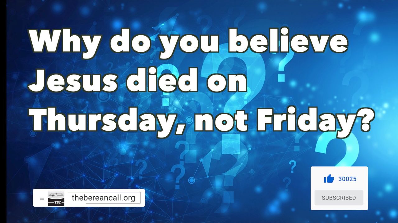 Question: I understand that you believe that Jesus died on the cross on Thursday, not Good Friday. Why do you say that, and does it matter?