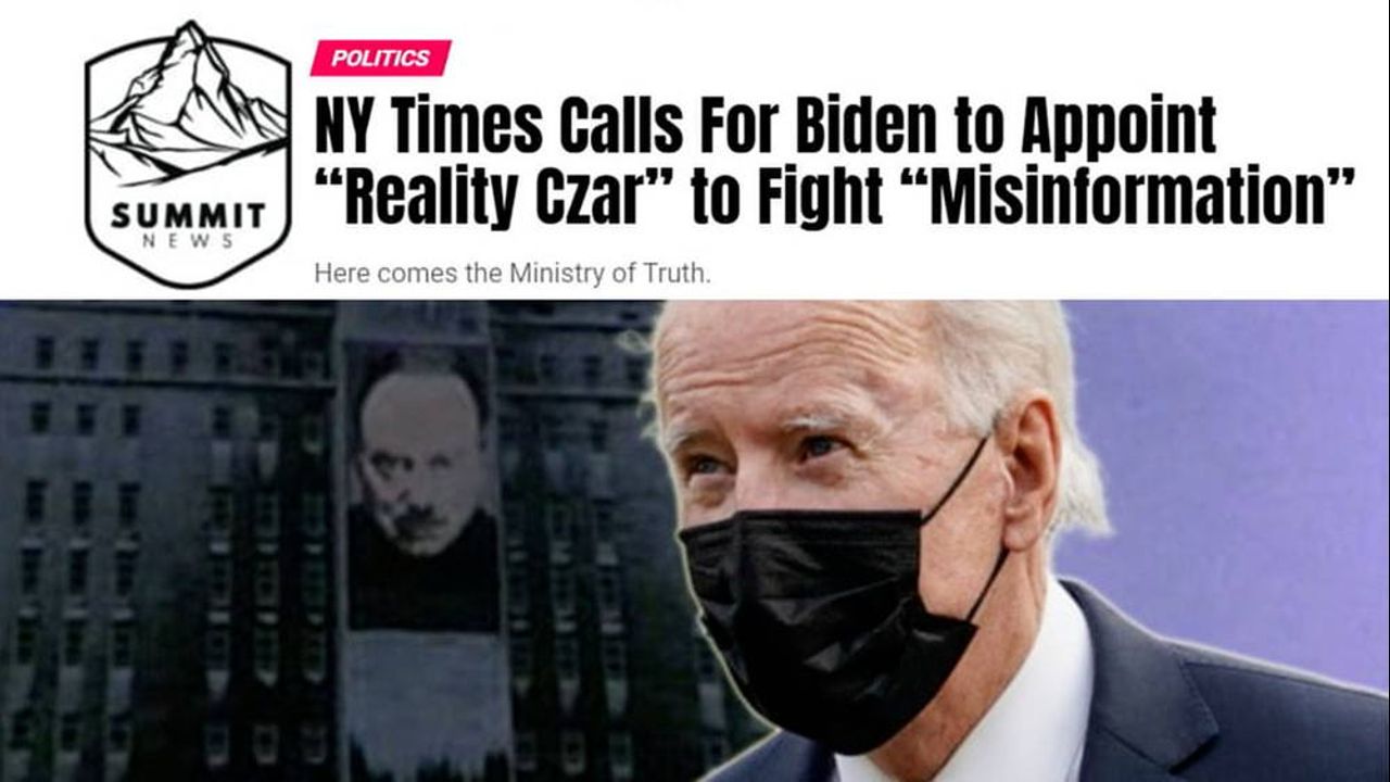 The New York Times has amplified claims by “experts” who are calling for Joe Biden to appoint a “reality czar,” prompting critics to compare the idea to the Ministry of Truth in George Orwell’s 1984.