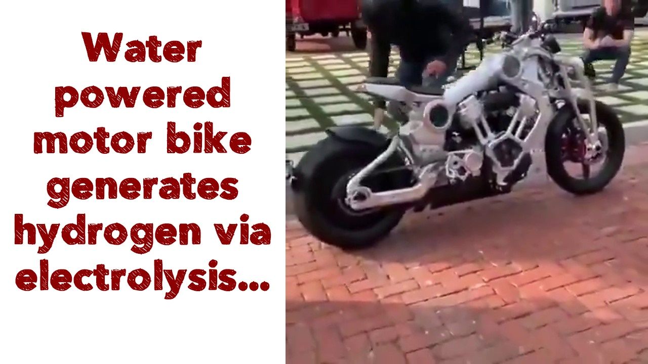 Water powered motor bike generates hydrogen via electrolysis...