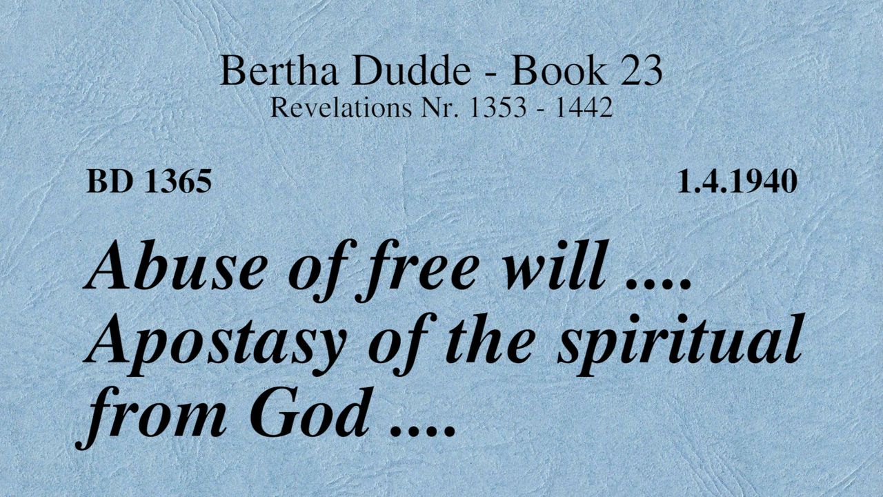 BD 1365 - ABUSE OF FREE WILL .... APOSTASY OF THE SPIRITUAL FROM GOD ....